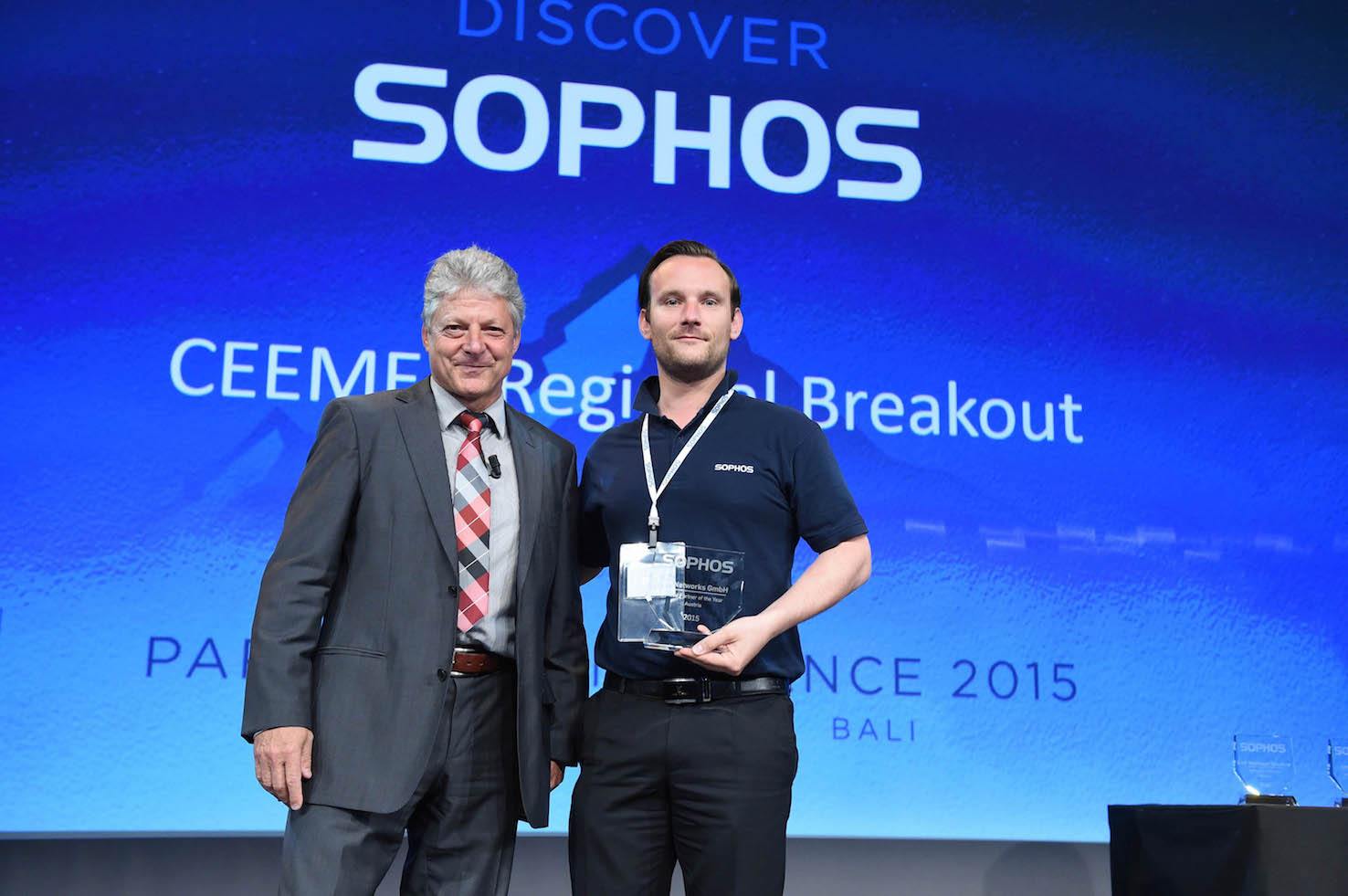 Patrick Bardel von der BP Networks GmbH nahm die Auszeichnung als Cloud Partner of the Year in Österreich von Karl Heinz Warum entgegen.