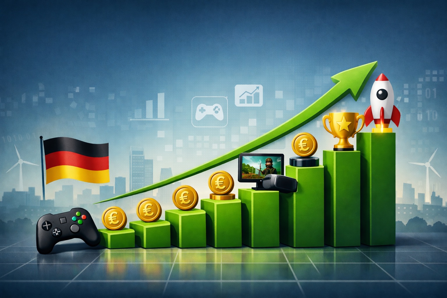 Deutschlands Computerspiele-Branche wächst stark. Wie eine Studie des Branchenverbands Game ergibt, hat sich die Anzahl der hierzulande tätigen Gamesfirmen im Zeitraum von 2018 bis 2024 fast verdoppelt. Waren es vor acht Jahren noch 524 Unternehmen, so waren es 2024 schon 948 (plus 81 Prozent). Der Jahresumsatz hat den Angaben zufolge um 22 Prozent auf 3,73 Milliarden Euro zugenommen, die Mitarbeiterzahl stieg um 20 Prozent auf 14.800.