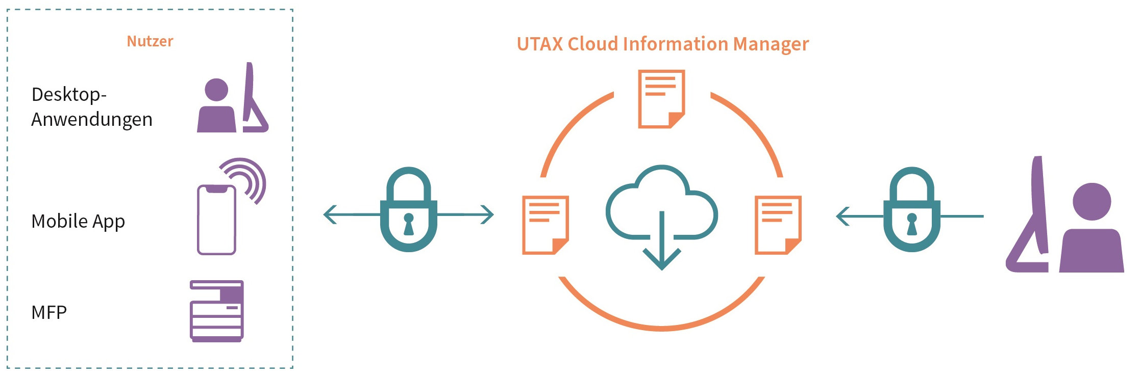 Der Cloud Information Manager ist nur ein Produkt aus dem modernen Cloud-Portfolio von UTAX. Dieses umfasst eine Reihe innovativer Produkte, die speziell auf den Fachhandel und seine Kunden zugeschnitten sind. Hierzu gehören auch der UTAX Fleetmanager für das effiziente Flottenmanagement, die digitale Arbeitszeiterfassung (am MFP) via UTAX Zeitblick und das ortsunabhängige Drucken und Scannen mit UTAX Cloud Print and Scan. Alle Produkte ermöglichen Fachhändlern, gerade kleinen und mittelständischen Unternehmen, passende Angebote für den Cloud-Einstieg im Bereich des Dokumentenmanagements zu machen.