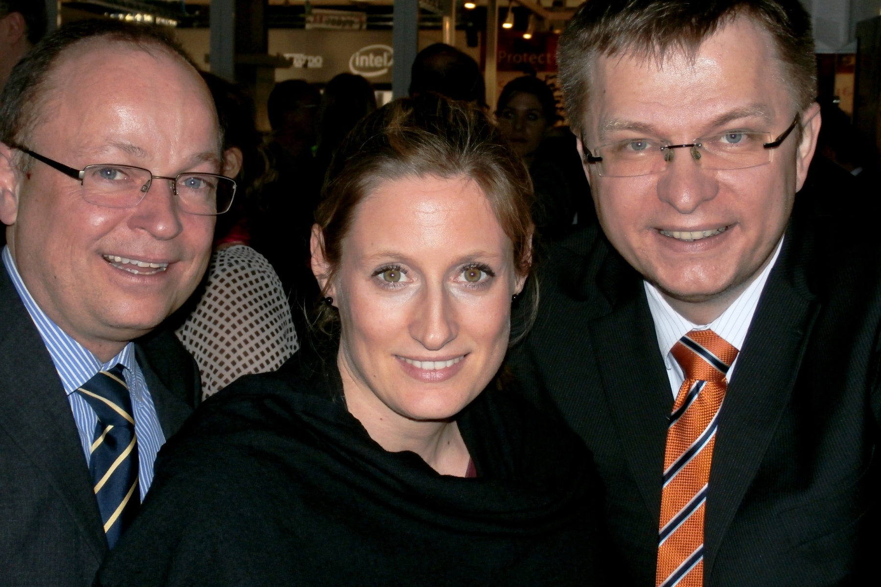Gruppenbild mit Dame: Da strahlten die Brother Brüder: PR-Spezialistin Katharina Scheurer umrahmt von den Brother-Pressemännern Jörg-Stefan (Joschi) Schmitt (li.) und Theo Reinerth