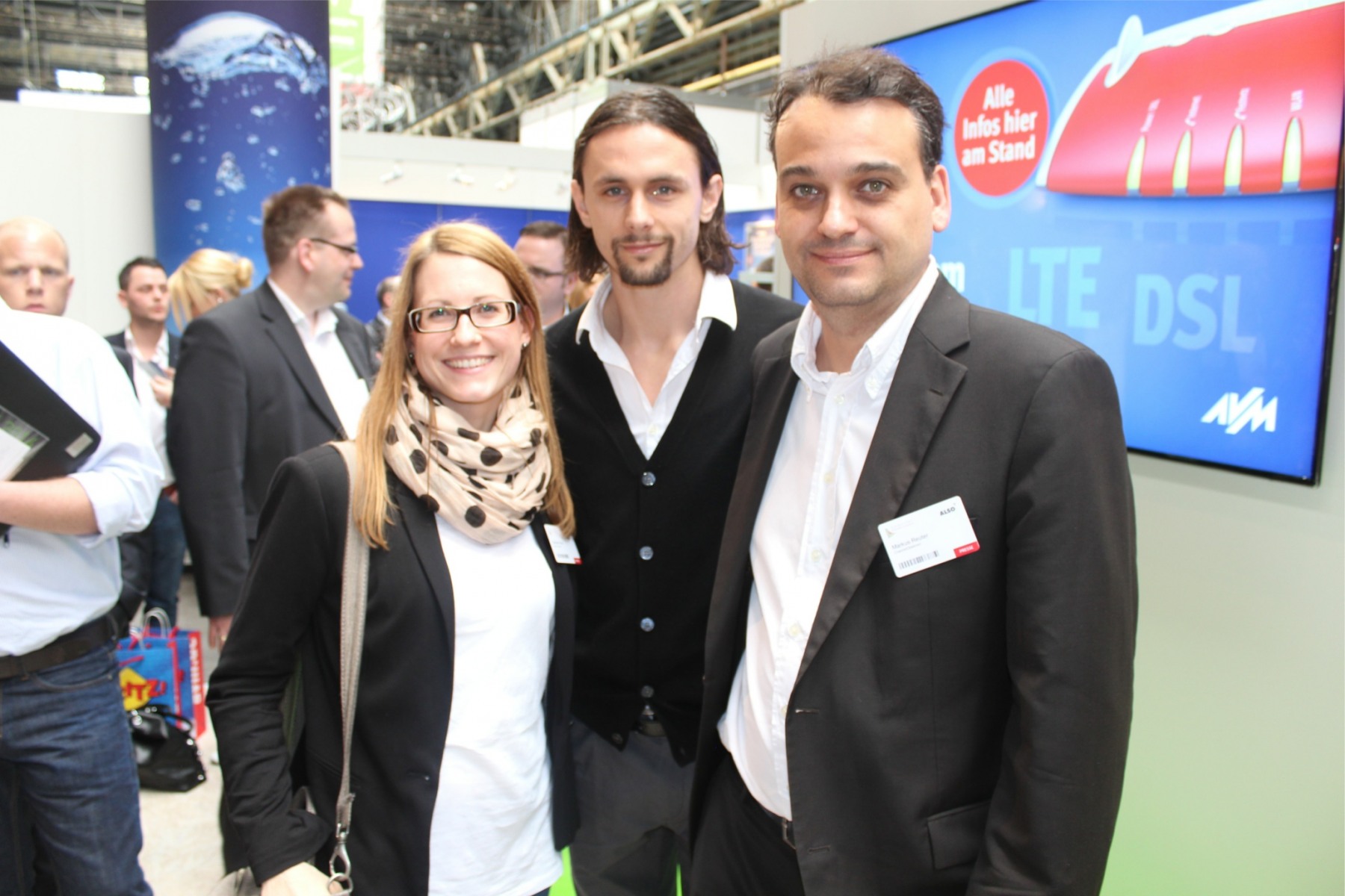 BVB-Star Neven Subotic mit Gabriela Horst (Telecom Handel) und Markus Reuter (ChannelObserver)