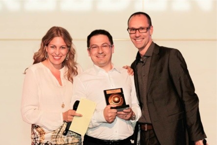 Rodrigue Zbinden (CEO Morphean AG) eingerahmt von Tanja Hilpert und Edwin Robool, Regional Director Middle Europe bei Axis (rechts)
