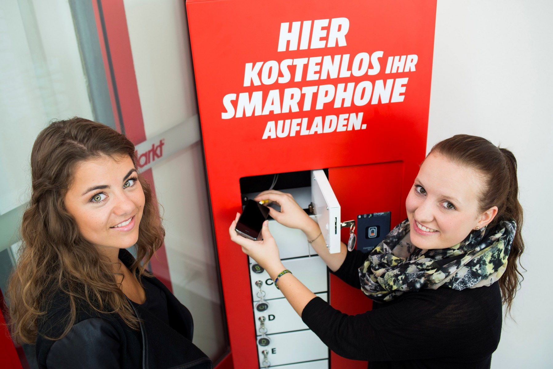 Energie fürs Smartphone: In abschließbaren Boxen können Kunden während des Marktbesuches ihr Smartphone aufladen. Nebeneffekt: Ohne Smartphone im Markt sind keine schnellen Preisvergleiche mit anderen Anbietern möglich