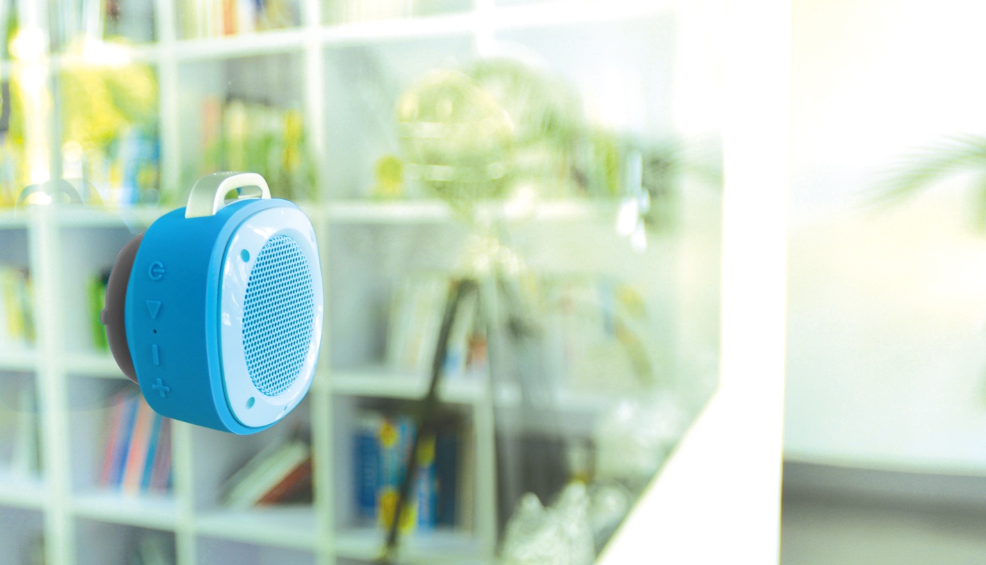 Bluetooth-Speaker mit Extra-Bass: Der wasserfeste Lautsprecher verwandelt glatte Oberflächen in einen zusätzlichen Subwoofer. So kann der wasserfeste Speaker beispielsweise problemlos unter der Dusche genutzt werden. Aber auch Outdoor-Enthusiasten weiß der Bluetooth-Speaker zu überzeugen. Die im Lieferumfang enthaltene Halterung ermöglicht die Mitnahme von „Airbeat 10“ auf dem Fahrrad. Der Airbeat von Divoom ist für 29,90 Euro erhältlich.