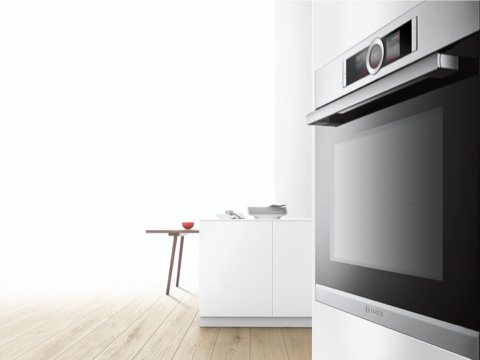 Bosch Backöfen Serie 8: Die Sensor-Backöfen punkten mit mehreren Weltneuheiten. Der "PerfectBake Backsensor" regelt automatisch den kompletten Backvorgang. Das Bratenthermometer soll mit drei Messpunkten für beste Ergebnisse bei gebratenen Gerichten sorgen. Die Bedienung erfolgt über einen neuartigen Bedienring. Einige Modelle der Baureihe sind mit Home Connect ausgestattet und ermöglichen erstmals eine intelligente Vernetzung. Rund 2.600 Euro.