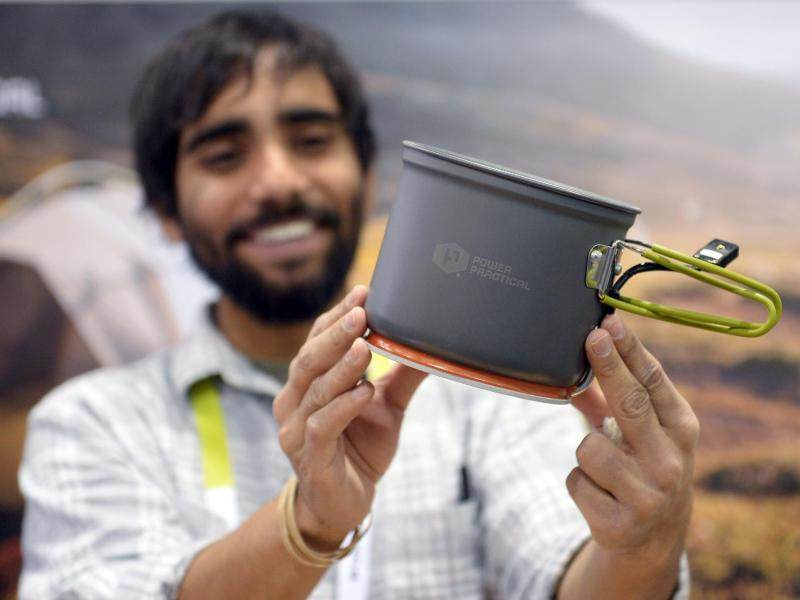 KOCHTOPF MIT LADEGERÄT: Wer in freier Natur seine Zelte aufgeschlagen hat, muss auch mal sein Telefon aufladen. Dafür gibt es zwar Batteriepacks - aber den Gründern des Startups Power Practical fiel noch eine andere Energiequelle ein. Ihre «PowerPot»-Kochtöpfe haben am Boden eine Zwischenschicht, die Strom aus Wärme erzeugt. Jedes Mal, wenn man etwas kocht, kann also nachgeladen werden. Mit offenem Feuer funktioniere es am besten, sagte Mitgründer Paul Slusser.