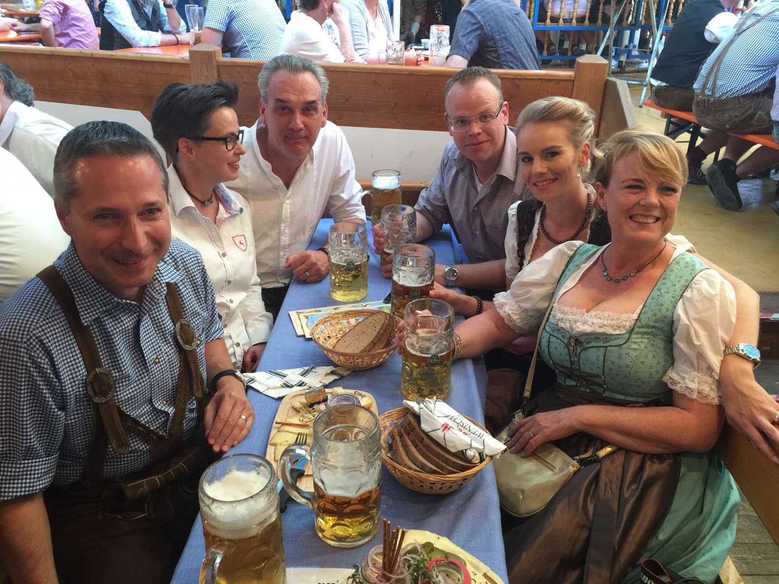 Bei Brotzeit und Bier waren auch Roland Franze und Janet Spacey (Janet Spacey PR, vorne) dabei