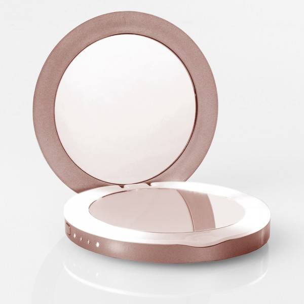 Pearl Powerbank mit Spiegel: Das Produkt kombiniert eine Powerbank, mit der das Smartphone zweimal aufgeladen werden kann, mit einem Schminkspiegel. Das Produkt passt in jede normale Handtasche.