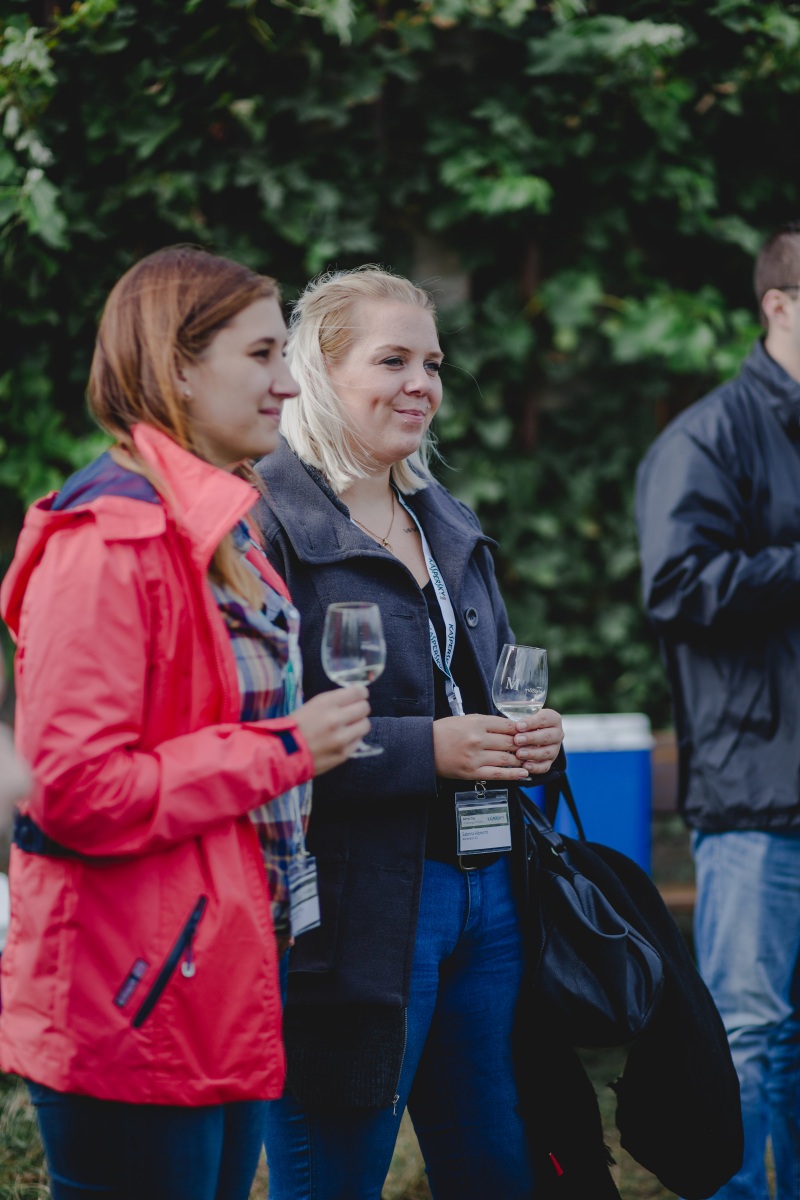 Sabrina Albrecht und Monique Fiebig von der Wortmann AG genießen ein Gläschen Silvaner.