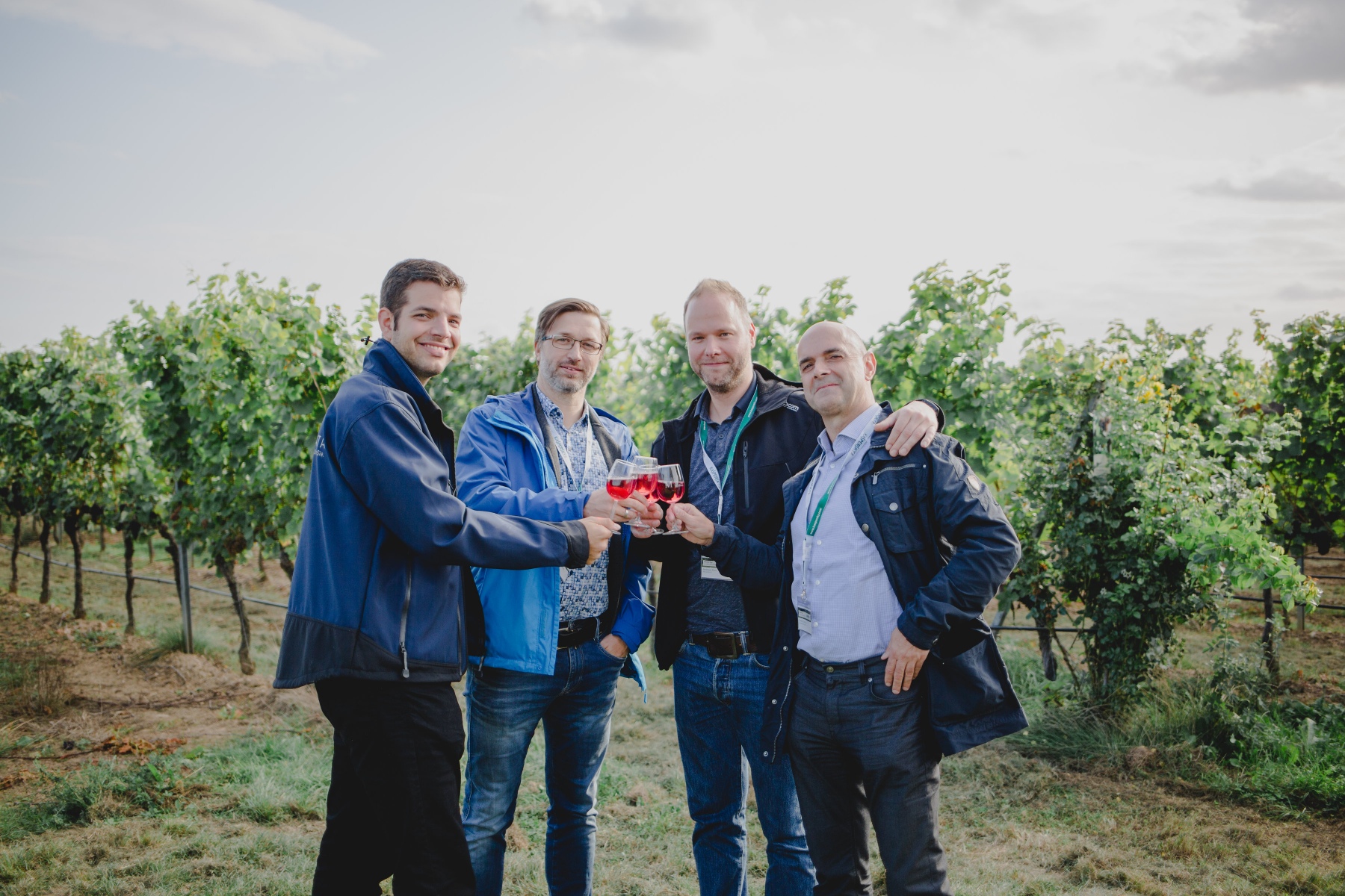 Alexander Dapp, CompData, Ronald Pustiowsky, Kaspersky Lab, Andreas Rohr, Nerosoft, Gunther Dietrich, Apia Systemhaus vor malerischer Weinkulisse.