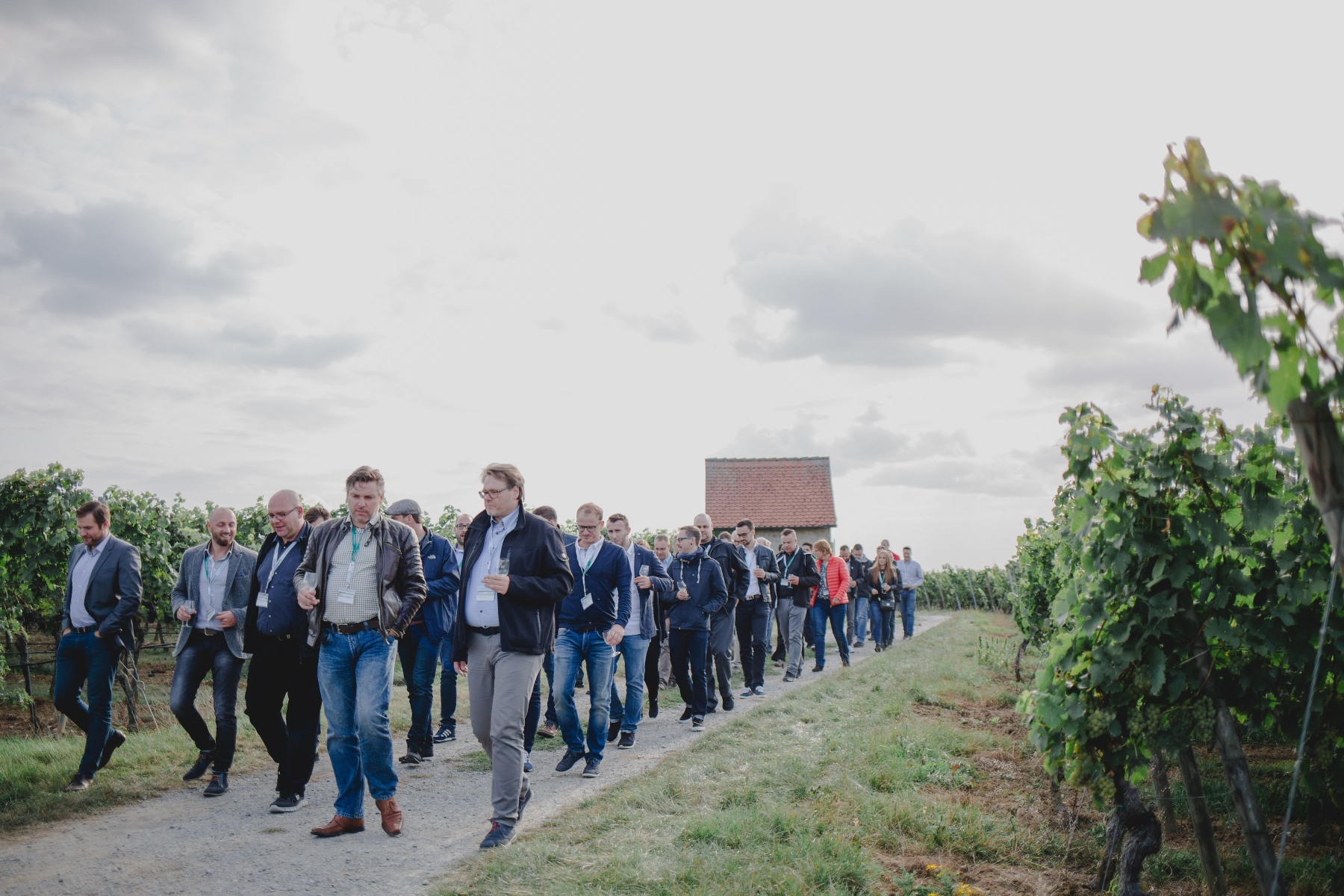 Angeführt von Wasilij Geist, Marco Schopp, Thomas Brandt (alle Kaspersky Lab), Rainer Lohmeier, SysTec und Anton Braun, Bizteam geht es nun zu Fuß durch das Weinanbaugebiet.
