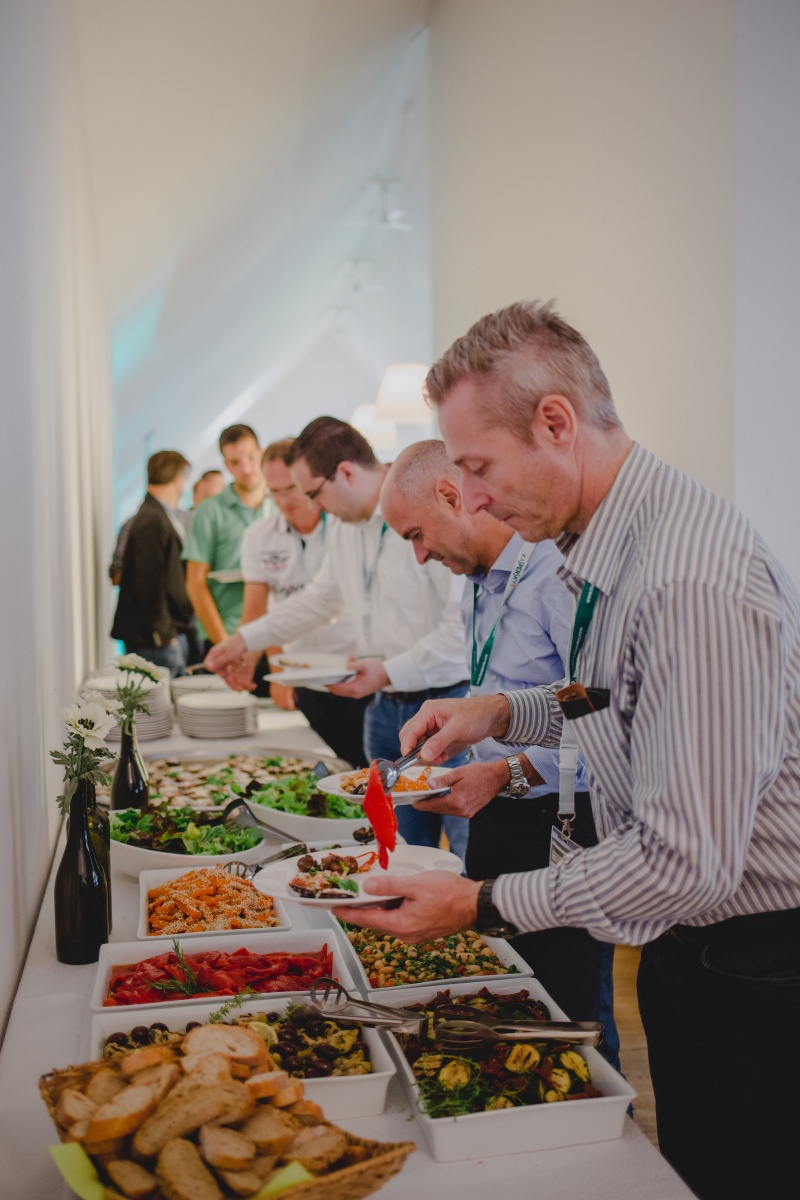 Gunther Dietrich, Apia Systemhaus und Lutz Kühne, Jo-Soft lassen sich die fränkisch-mediterranen Köstlichkeiten schmecken.