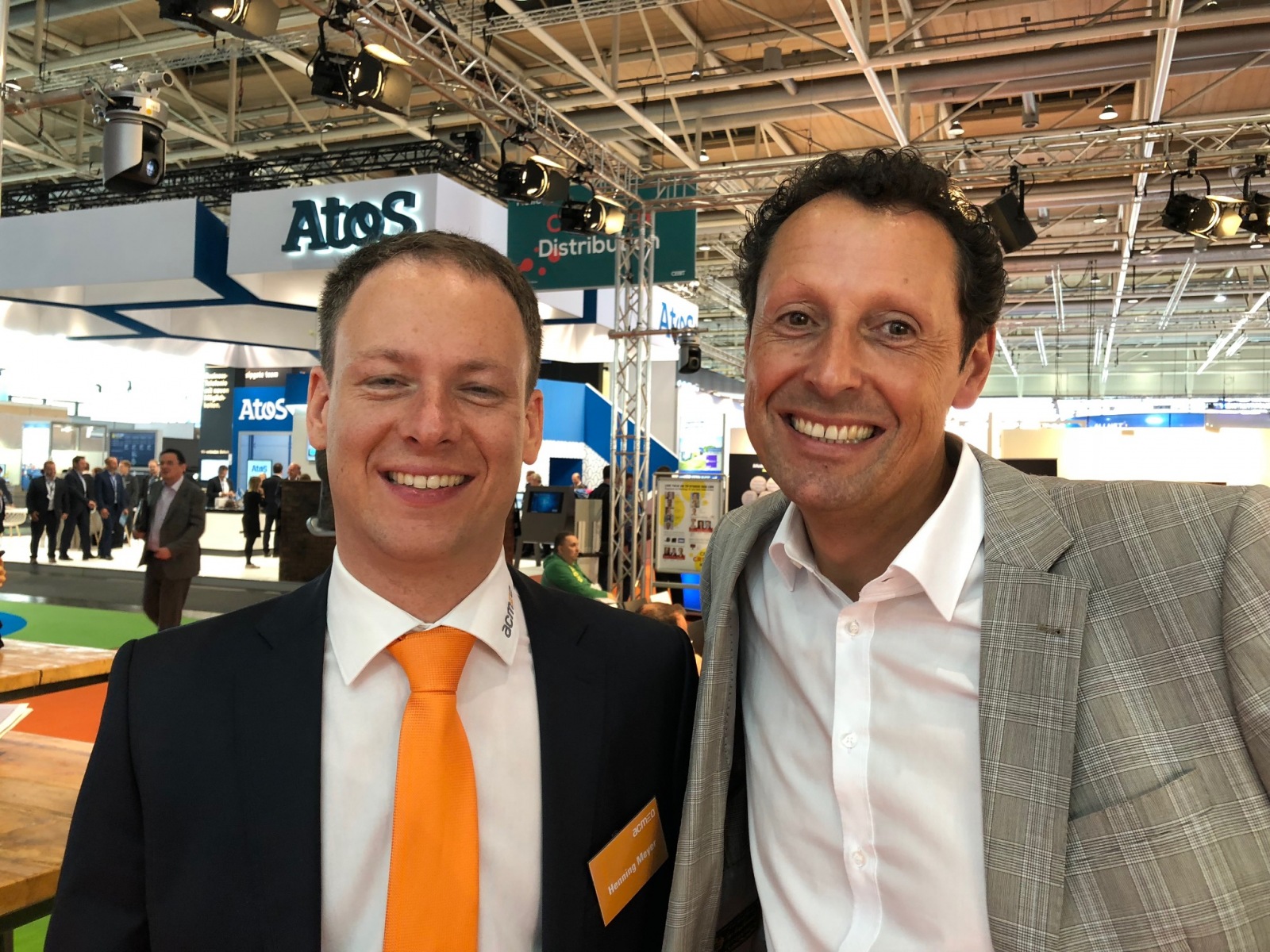 In Halle 13 war die Prominenz aus Channel & Distribution am Start: Acmeo-Chef Henning Meyer (links) mit c-entron-Chef Thomas Hoffmann