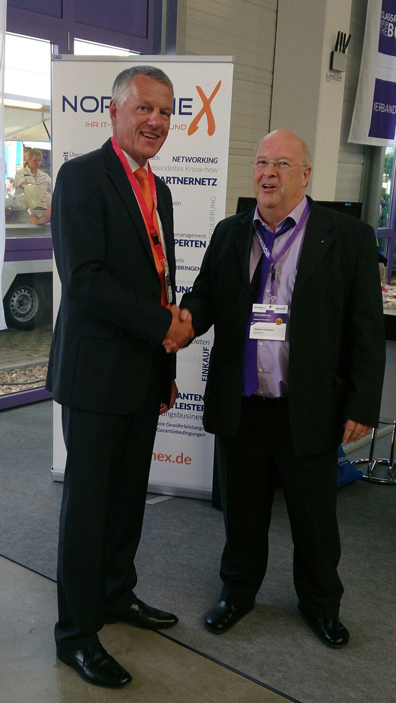 Ralph Warmbold und Siegbert Wortmann auf der Messe «Wortmann Solutions 2016»Die Systemhaus-Kooperation Nordanex kooperiert mit Hersteller und Distributor Wortmann im Bereich Managed-Services. So wird das gesamte Cloud-Portfolio von Wortmann die Managed-Services von Nordanex ergänzen. Die Verbundgruppe vermarktet die Services unter dem Brand «Nordanex Managed IT Service» (NMS). Zum Angebot gehören Leistungsbausteine von Hosting über Backup und Hosted Exchange bis Housing und Storage. Ziel bleibe weiterhin, die am NMS-Programm teilnehmenden Systemhäuser als Managed-Service-Provider auszubilden, teilte Nordanex mit. Diese könnten dadurch ihren Kunden die Lösung weg vom klassischen IT-Geschäft hin zu cloudbasierten Services anbieten.