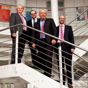 Das Raber+Märcker-Team um Geschäftsführer Hansjörg Schäfer (links).Beide Unternehmen und Insolvenzverwalter Dr. Tibor Braun unterzeichneten den Kaufvertrag für die Übernahme des operativen Geschäfts. Das auf Informationssicherheit spezialisierte IT-Systemhaus headtechnology hatte im Februar 2013 ein geordnetes Insolvenzverfahren eingeleitet. Jetzt führt Raber+Märcker alle geschäftlichen Aktivitäten weiter und übernimmt insgesamt 17 Mitarbeiterinnen und Mitarbeiter am Standort Ludwigsburg und steigt in das wachsende Geschäftsfeld IT-Security ein, um die Kunden auch in diesem Bereich optimal beraten zu können.