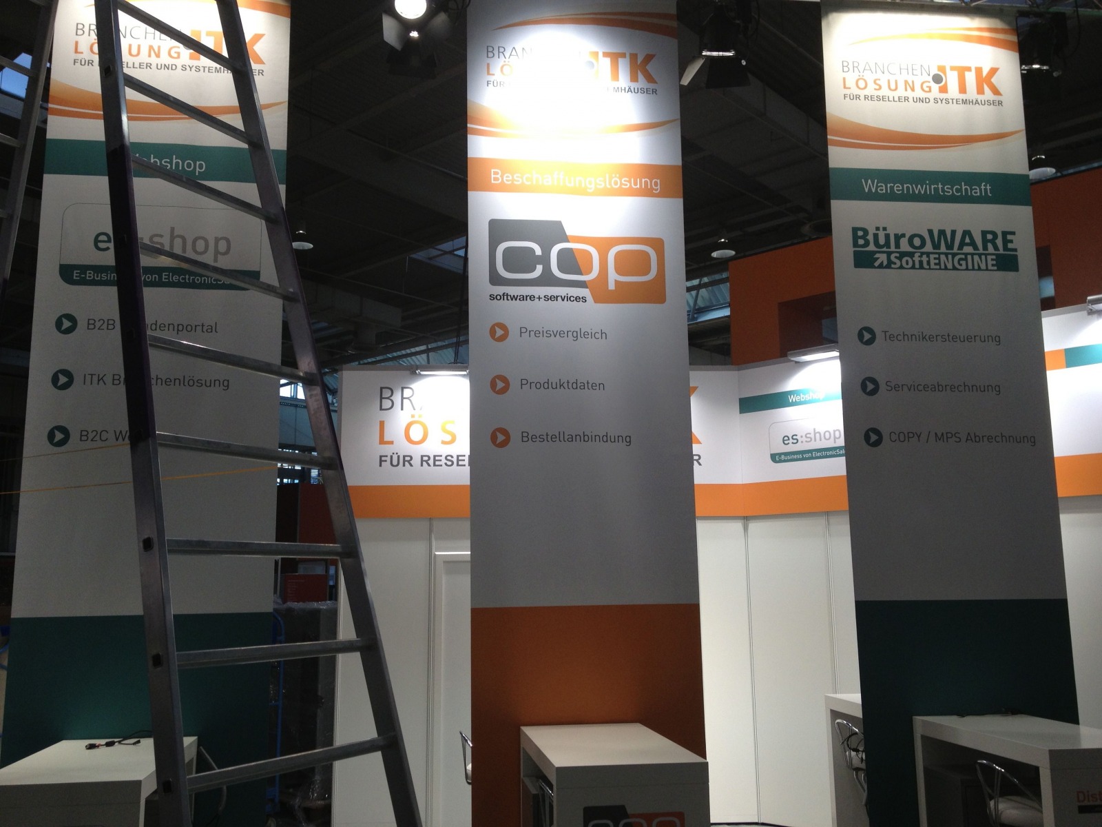 Montag später Nachmittag: Noch wird im Fachhandelszentrum"Planet Reseller" gehämmert. Doch morgen muss alles fertig sein. Wir haben die Bilder.