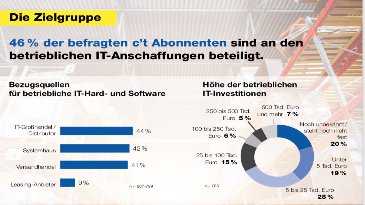 Zu den Empfängern zählen große und regionale Systemhäuser, aber auch die c’t-Firmenabos. Diese Firmen-Empfänger bestellen in erheblichem Umfang ITK-Lösungen, wie eine aktuelle Studie belegt. Zudem zählt die ITK-Distribution zu der bevorzugten Einkaufsquelle dieser Gruppe (siehe Foto). Die Ausgabe soll dem ITK-Channel als Überblick und Orientierung in einem zunehmend komplexen Marktumfeld dienen. Die Ansprechpartner von Heise und ChannelObserver stehen für weitere Informationen gerne zur Verfügung. Weitere Details gibt es auch per Mail an info(at)channelobserver.de.