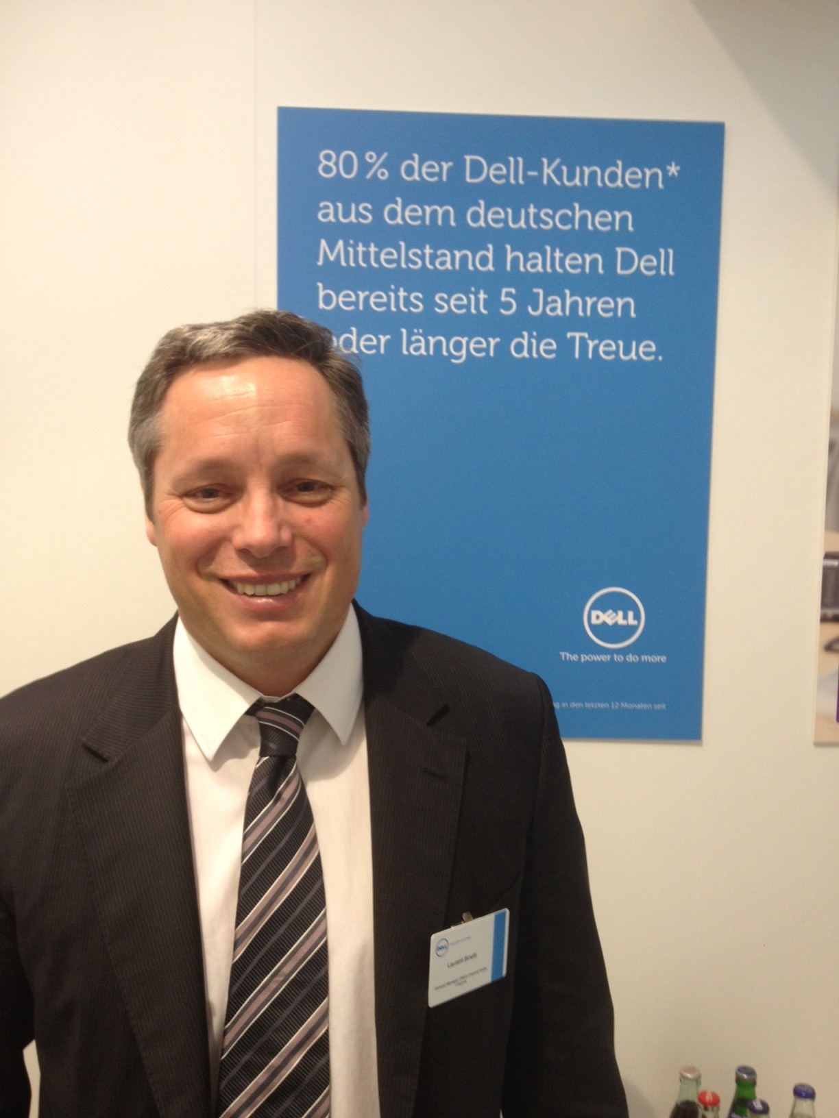 Laurent Binetti, EMEA-Channel-Chef von Dell, auf der CeBIT.Dell arbeitet in Deutschland immer noch nicht mit einem Broadliner zusammen. Überlegungen, dieses Distributionsmodell zu ändern, kursieren bei dem Hersteller schon länger. Jetzt will Laurent Binetti, der neue EMEA-Channelchef von Dell, Tatsachen folgen lassen: „Ein Broadliner könnte unser Geschäftsmodell in Deutschland unterstützen“, betont Binetti im Gespräch mit ChannelObserver auf der CeBIT. In den USA distribuiert beispielsweise Ingram Micro Produkte von Dell. Ein entsprechender Distributionsvertrag für Deutschland werde „mittelfristig“ folgen.