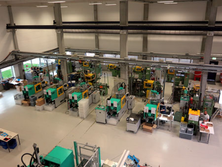 Wie ein gewaltiger Stempel schlägt der grüne Stahl-Arm in den heißen Kunststoff, dann holt ein Greifer rote Abdeckhauben hervor – Gehäuse für Router, wie sie in Millionen Wohnzimmern stehen. Auf einem Maschinenkarussell geht es weiter mit dem Buchstabendruck: «WLAN», «Power/DSL», «Festnetz». Sensoren prüfen, ob die Hauben sauber gearbeitet sind – wenn nicht, zieht die Maschine sie aus dem Verkehr, schreddert den Ausschuss, gibt das Granulat in den Kunststofftank vorn an der Maschine – die Reise beginnt von neuem. Thomas Dreusicke blickt auf sein Handy. Stimmt die Geschwindigkeit der Maschine? Gibt es zu viel Ausschuss? Muss er das Tempo drosseln? Mit dem Handy kann der Inhaber des Berliner Kunststoffverarbeiters India seine Spritzgussmaschinen von jedem Ort der Welt kontrollieren – solange er ein Netz hat. «Das gibt eine gewisse Beruhigung. In Störfällen weiß man, was ist.» Das Familienunternehmen aus Mariendorf ergreift die Möglichkeiten der Digitalisierung, aber es nutzt nicht alle. Die Heizung des Werk regelt Dreusicke von unterwegs, seine Maschinen beobachtet er nur, steuert sie aber nicht mobil – aus Sicherheitsgründen. «Die haben 400 Tonnen Schließgewicht, das muss jemand vor Ort machen.» In der Mariendorfer Werkshalle brummen die Maschinen, es riecht nach heißem Plastik. Nicht nur Routergehäuse laufen vom Band, auch Backformen in den Konturen des Brandenburger Tors. Einige Maschinen wären in der Lage, sich selbsttätig untereinander abzustimmen. Doch hier beherrscht der Mensch die Schnittstellen. Den Weg zur viel gerühmten vierten industriellen Revolution hat der Mittelständler gerade erst begonnen.