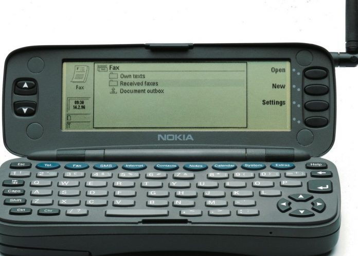 „Das Büro in der Westentasche“ versprach Nokia vor 25 Jahren zum Marktstart eines Handys, das als Urahn heutiger Smartphones durchgehen kann. Es sollte besser eine voluminöse Westentasche sein: Das Modell Nokia 9000 Communicator war fast vier Zentimeter dick und wog knapp 400 Gramm. Das Telefon war allerdings auch etwas besonderes: Wie ein Mini-Laptop konnte man es aufklappen, so dass eine Tastatur und ein Schwarz-Weiß-Display mit einer Diagonale von 4,5 Zoll (11,5 cm) zum Vorschein kamen. Das Nokia 9000 wurde auf der Computermesse CeBIT 1996 in Hannover vorgestellt und kam am 15. August 1996 auf den Markt. Das Gerät gab für ein Jahrzehnt die Vorstellung vor, wie ein Smartphone auszusehen hat: Es hat Knöpfe. Viele Knöpfe. Es sind eben kleine Computer für unterwegs. Nach dem Communicator brachten die Blackberry-Telefone mit ihren Tastaturen die Idee zur Perfektion – bis Apples iPhone mit seinem Multitouch-Bildschirm 2007 dieses Konzept torpedierte und den Grundstein für heutige Smartphones legte. Die übrigens tatsächlich als Büros in der Westentasche fungieren können – was sich besonders in der Corona-Pandemie zeigte. In den 1990er Jahren konnte man von den Fähigkeiten heutiger Smartphones nur träumen – wie etwa Microsoft 1994 in dem visionären Video „Information at your fingertips“, in dem Taschen-Geräte mit großem Display gezeigt wurden, die mit dem Internet verbunden waren. In dem Video, das Bill Gates in seiner Keynote auf der inzwischen längst eingegangenen Computermesse Comdex in Las Vegas vorführte, wurde das Smartphone auch schon benutzt, um einen Kaffee kontaktlos ohne Bargeld zu bezahlen.