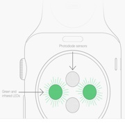 Probleme mit den Sensoren (Foto: Apple)Apple hat bestätigt, dass Tätowierungen am Handgelenk die Herzfrequenz-Sensoren seiner Computeruhr behindern können. Tinte oder Muster der Tattoos könnten das Licht des Sensors (siehe Foto) blockieren, hieß es am Wochenende in einem Dokument auf Apples Website. In den vergangenen Tagen hatten sich einige Käufer der Apple Watch mit tätowierten Unterarmen im Internet über Probleme mit der Pulsmessung beschwert. Die Uhr misst den Blutfluss mit Hilfe grüner LEDs, die einige hundert Mal pro Sekunde blinken, und Photodioden. (dpa)