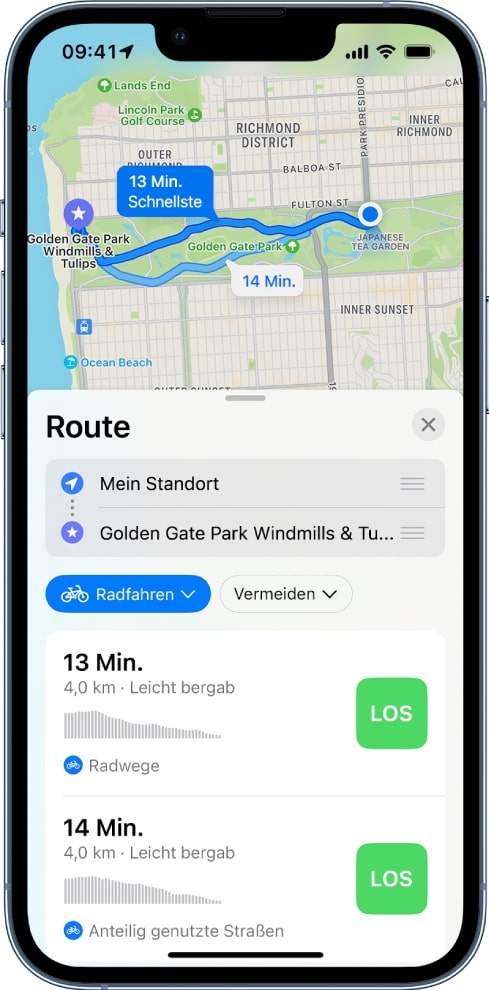 Im Wettstreit mit Google und anderen Karten-Anbietern verbessert Apple seine Karten-App in Deutschland mit Fahrrad-Routen und mehr Details in Großstädten. Die Navigation für Radfahrer ist landesweit verfügbar, wie der iPhone-Konzern am Freitag mitteilte. Googles Karten-App in Deutschland hatte die Funktion bereits. Die detaillierten Stadt-Ansichten mit Fahrbahn-Markierungen und einzelnen Bäumen werden zunächst in Berlin, Hamburg und München eingeführt. Für die Funktionen erfasste Apple in den vergangenen Jahren Straßen mit Kameras und Laser-Radaren.