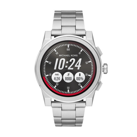 Michael Kors Access Grayson Touchscreen Smartwatch (Photo: Business Wire)Es ist ein Zeichen für den Vormarsch vernetzter Uhren in den Massenmarkt: Alle Männer-Modelle der Marke «Michael Kors» werden künftig einen Chip oder einen Touchscreen haben. Dazu gehören unter anderem Hybrid-Uhren, die zwar ein Zifferblatt mit klassischen Zeigern haben, aber zum Beispiel Schritte zählen oder einen Knopf zum auslösen der Smartphone-Kamera haben, sagte Michael-Kors-Chef John Idol am Donnerstag am Rande der Uhrenmesse Baselworld. «In einem Jahr wird Michael Kors die zweitgrößte Smartwatch-Marke in der Welt sein», verkündete er und stellte damit die aktuelle Marktführerschaft der Apple Watch nicht in Frage.
