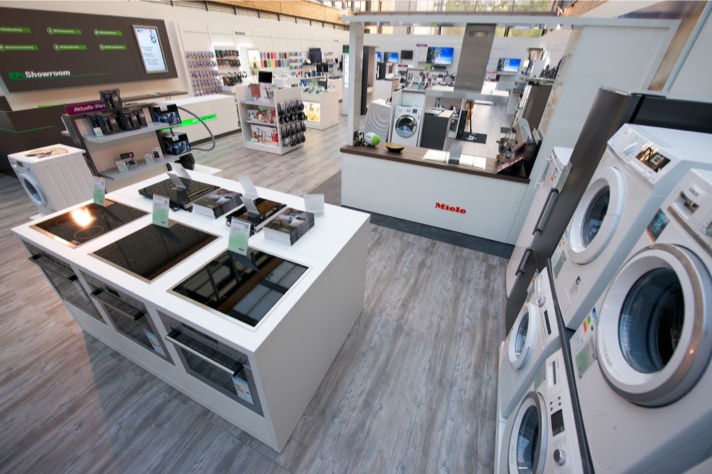 Die Verbundgruppe EP stellt ihr neues Ladenbau-Konzept vor: In einem 200 Quadratmeter großen „Showroom“ sollen Kunden einen realistischen Eindruck von der Zusammenstellung der verschiedenen Komponenten erhalten. Die Elemente, beispielsweise eine Funktionsküche oder ein Präsentationstisch für Mobilgeräte, können individuell aufeinander abgestimmt und so an die Produktschwerpunkte jedes Händlers angepasst werden. Zusätzlich setzt die Warenpräsentation auf die Vernetzung zwischen den einzelnen Produkten und soll so für den Verbraucher leicht verständlich den Komfort der jeweiligen Lösung veranschaulichen. EP gab im Mai bekannt, dass sich die rund 700 EP-Händler in Deutschland künftig zu „einheitlichen Qualitätsstandards“ bekennen müssten. Zu diesen Standards gehört auch das Erscheinungsbild der Geschäfte.