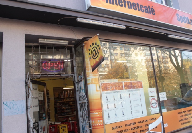 Ähnliches berichtet Ghislain Simo, der Betreiber des Internetcafés in Berlin-Wedding. «Die Nachfrage ist schon noch da – schließlich hat nicht jeder einen Drucker oder Scanner zu Hause.» Auch viele Schüler der nahe gelegenen Schulen kämen zu ihm, etwa wenn sie eine Freistunde haben. Die Internet-Umsätze in seinem Café seien in den vergangenen Jahren stabil geblieben. Allerdings steigen die Kosten, zum Beispiel für die Miete. «Allein mit Internet kann ich kein Geschäft machen – da müsste ich mindestens das Doppelte verlangen», sagt Simo. 50 Cent kostet eine halbe Stunde derzeit. Simos Internetcafé ist deshalb auch ein Spätkauf, ein Laden, in dem es bis spät in die Nacht Getränke und Lebensmittel gibt. Zudem fungiert es als Paketshop für die Post. «Und ich betreibe einen kleinen Weinhandel», erzählt Simo. Ein anderes Internetcafé in Berlin-Neukölln hat schon ganz umgestellt und ist nur noch Spätkauf. «Warum soll ich 50 Cent für die halbe Stunde zahlen, wenn ich mit der Flatrate auf dem Handy den ganzen Monat Internet nutzen kann?», erklärt die Betreiberin den Grund für die Umstellung. Auf der Leuchtreklame vor dem Laden sind die Internet-Tarife von blauem Klebeband verdeckt.—pagebreak—