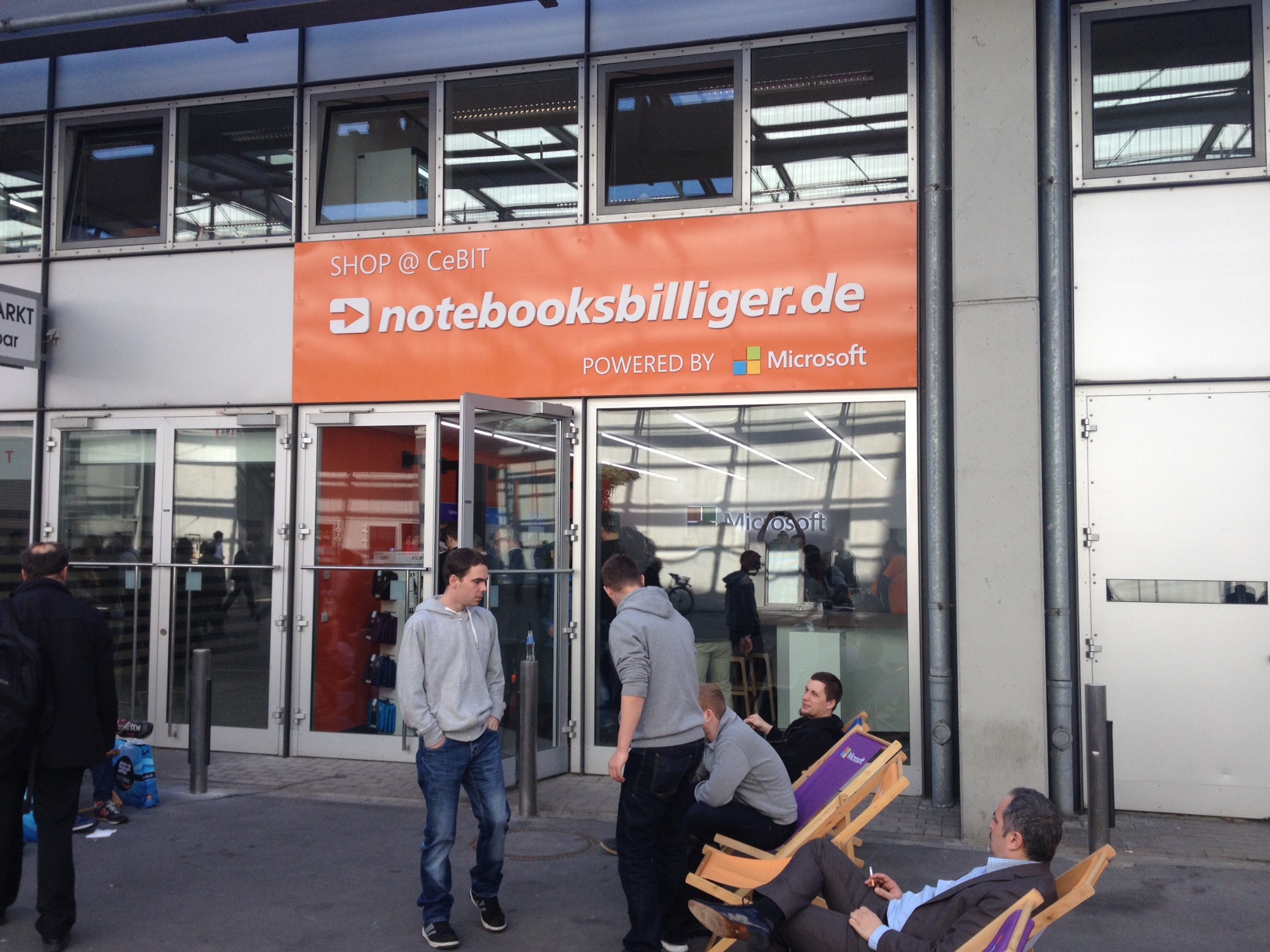 In Kooperation mit Microsoft eröffnete Notebooksbilliger einen CeBIT-Shop auf dem Messegelände an der Außenseite von Halle 4. Dort befindet sich auch der Messestand von Microsoft. «Shop@CeBIT, powered by Microsoft» heißt der vorübergehend zur Messe geöffnete Store des Etailers. Der Titel verdeutlicht, dass es dort ausschließlich Produkte rund um Microsoft und Windows zu kaufen gibt. Es herrscht in dem kleinen Store jedenfalls ein großer Andrang. Zahlreiche Messebesucher kaufen dort Produkte zum Schnäppchenpreis und zahlen in bar oder per EC-Karte. «Es winken im eigenen CeBIT-Shop exklusive Messeangebote mit sensationellen Rabatten. Bis zu 250 Euro lassen sich sparen», verspricht das Unternehmen auf seiner Webseite.