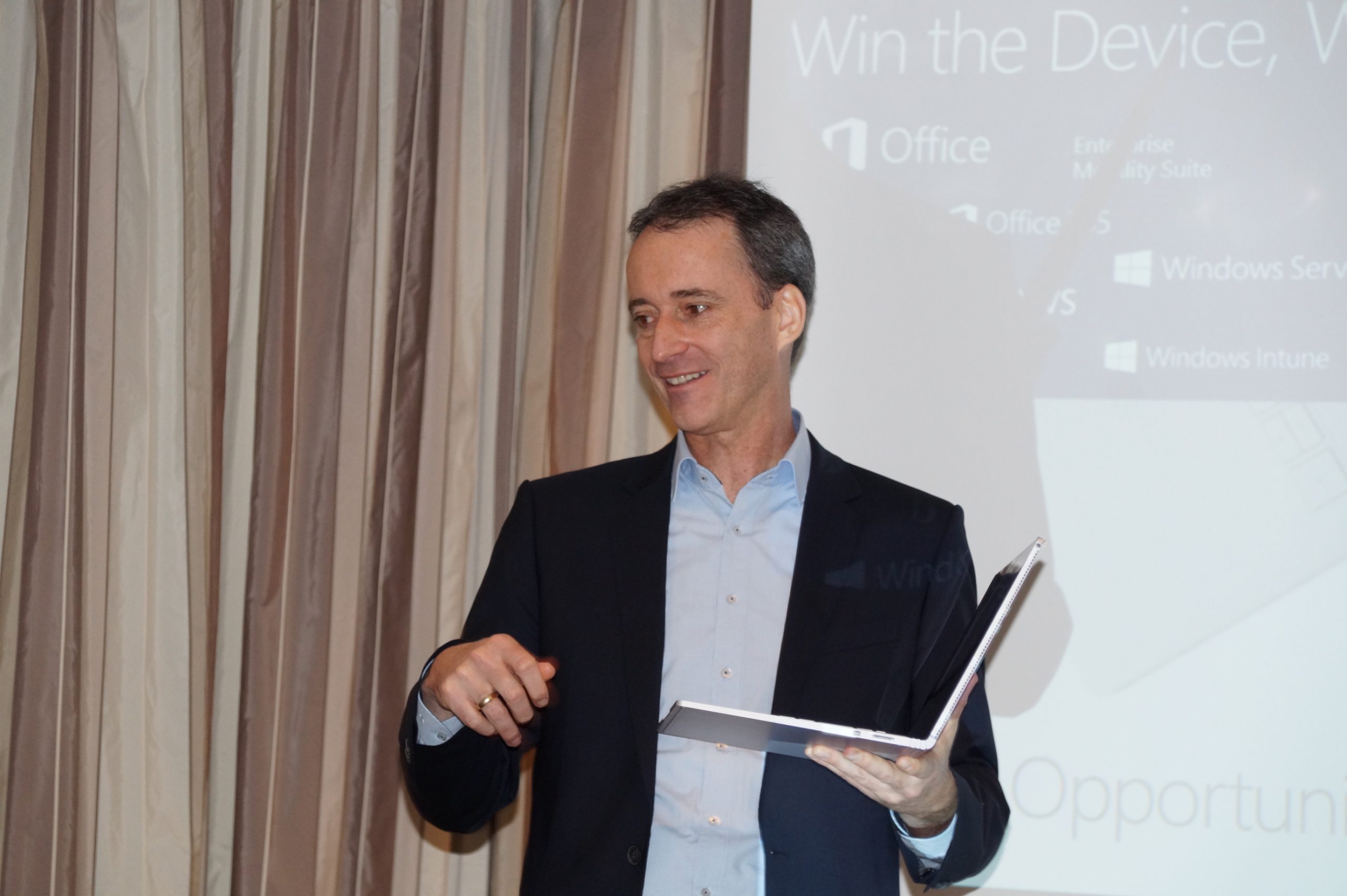 Mit dem Convertible- oder 2-in-1-Konzept liegt Microsoft Gürtler zufolge voll im Markttrend. Denn während die Verkaufszahlen bei Notebooks und Tablets mehr oder weniger stark eingebrochen sind, sei der Markt für 2-in-1-Geräte in 2015 um 70 Prozent gewachsen. Um dem Rechnung zu tragen und die Surface-Familie einschließlich Surface Pro, Surface Hub und jetzt Surface Book weiter voranzutreiben, investiere Microsoft Deutschland mit aktuell sieben Mann auch in den Ausbau der Partnerbetreuung. Den vier Distributoren Also, Ingram Micro, Tech Data und Wortmann kommt bei der Betreuung der 450 exklusiven Fachhandelspartner eine große Bedeutung zu. Die Exklusivität der Vertriebspartner soll auch gewährleisten, dass die Preise nicht kaputtgemacht werden. Wortmann startet diese Woche noch eine Surface-Roadshow, wobei auch Einsatzszenarien gezeigt werden sollen.